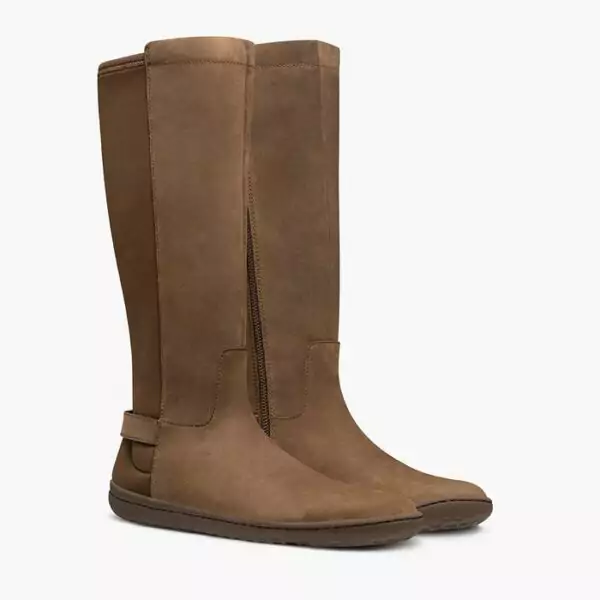 A staple for any barefoot winter wardrobe. Clean and elegant design goes barefoot in this riding boot style to take you from city meetings to country pub in one smart stride. Made with naturally-scarred wild hide leather and a stretchy neoprene calf panel for natural adjustability.